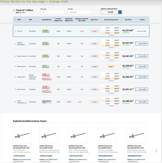Redesigned the PDP to accommodate multiple offers per part number. This enables multiple sellers to list the same part, creating a competitive environment that benefits buyers by providing more options.