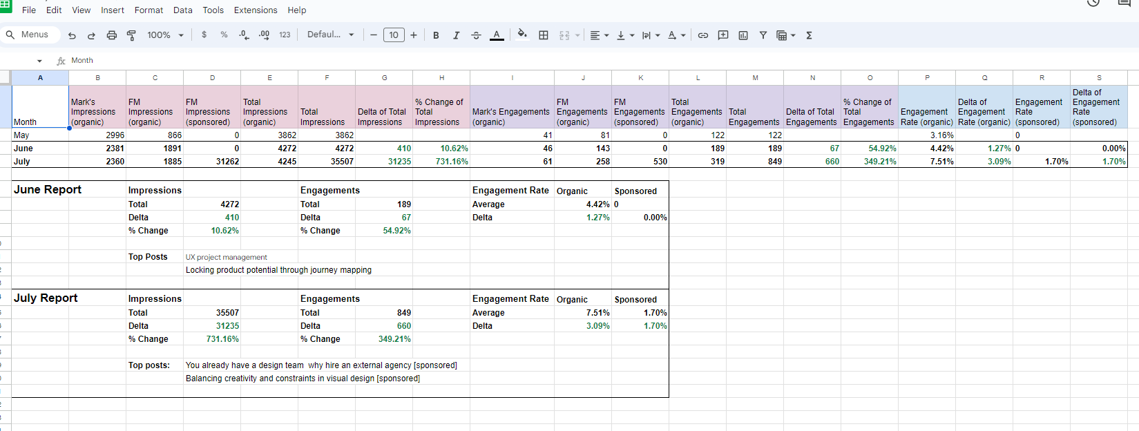 Monthly content calendar for 24 organic social media posts